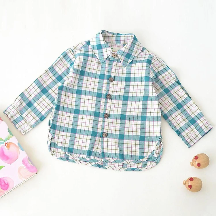 Áo sơ mi caro xanh tay dài cho Bé trai Bé gái
