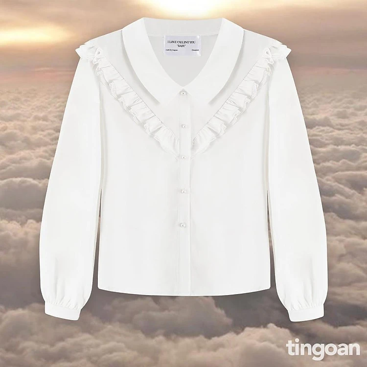 Áo sơ mi cổ bẻ bèo ngực chống nhăn trắng (freesize) tingoan OLIVIA BLOUSE/WH