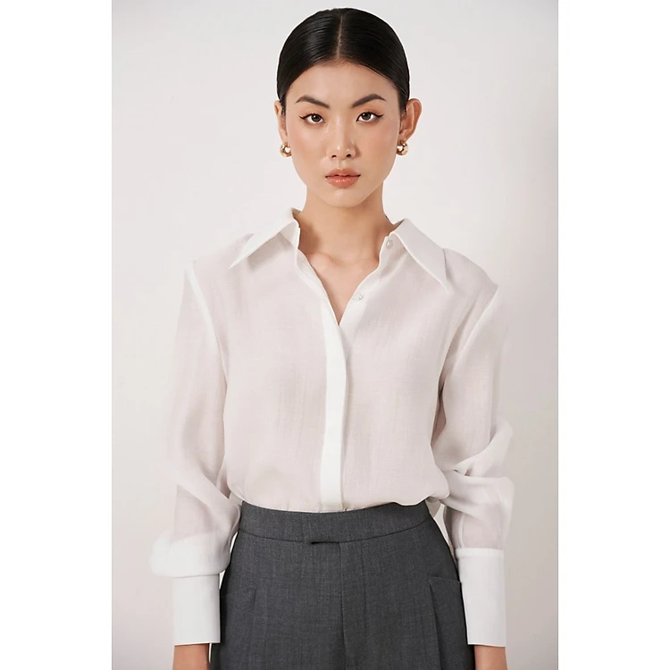 Áo sơ mi cổ đức bản to Naomi thiết kế cao cấp WHITE CHIC