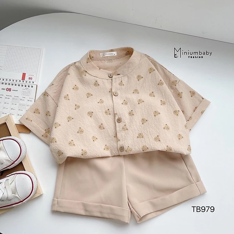 Áo sơ mi cổ tàu cộc tay cho bé trai phong cách Hàn Quốc, vải thô boi mềm, thoáng mát size từ 10 đến 23 kg