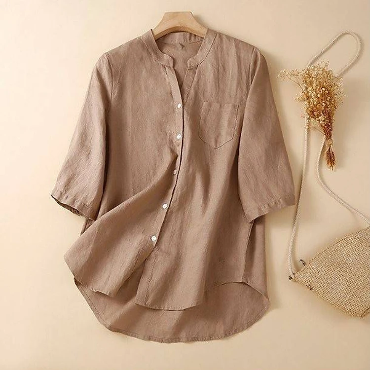 Áo sơ mi cổ tàu dáng tay lửng màu sắc vintage, chất đũi mềm Haint Boutique Sm200