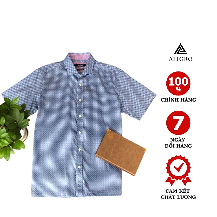 Áo sơ mi cộc tay nam Aligro xanh chấm tròn dáng Customfit ALGS-C89