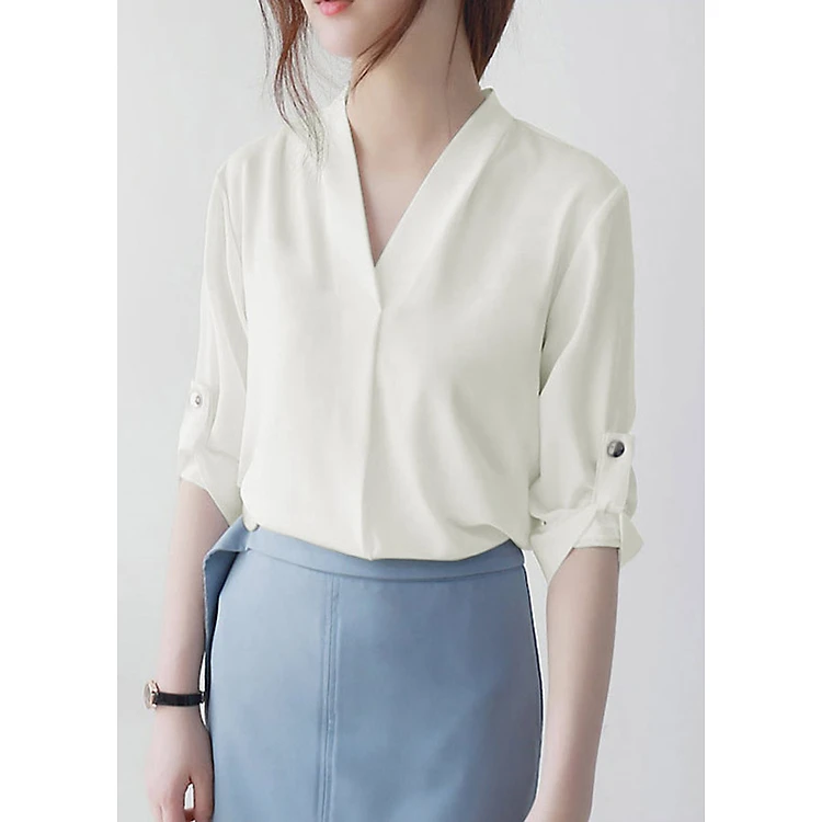 Áo sơ mi công sở kiểu áo sơ mi đơn giản tay lỡ cổ V GOTI 3084