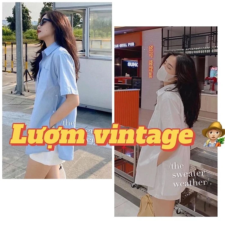 Áo Sơ Mi Cúc Xẻ Tà 2 Bên Form Rộng Hàn Quốc - Lượm vintage