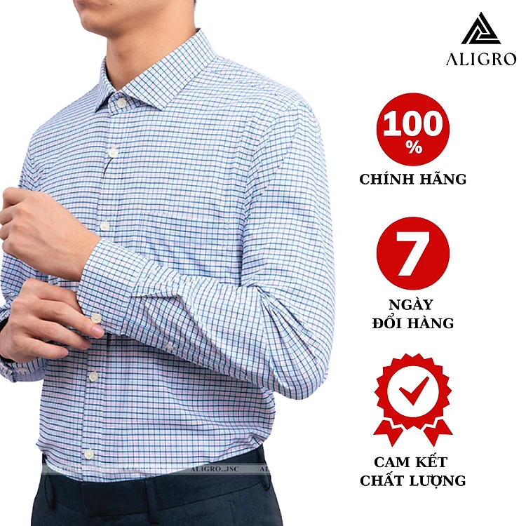 Áo sơ mi dài tay nam Aligro kẻ xanh trắng ALGS176