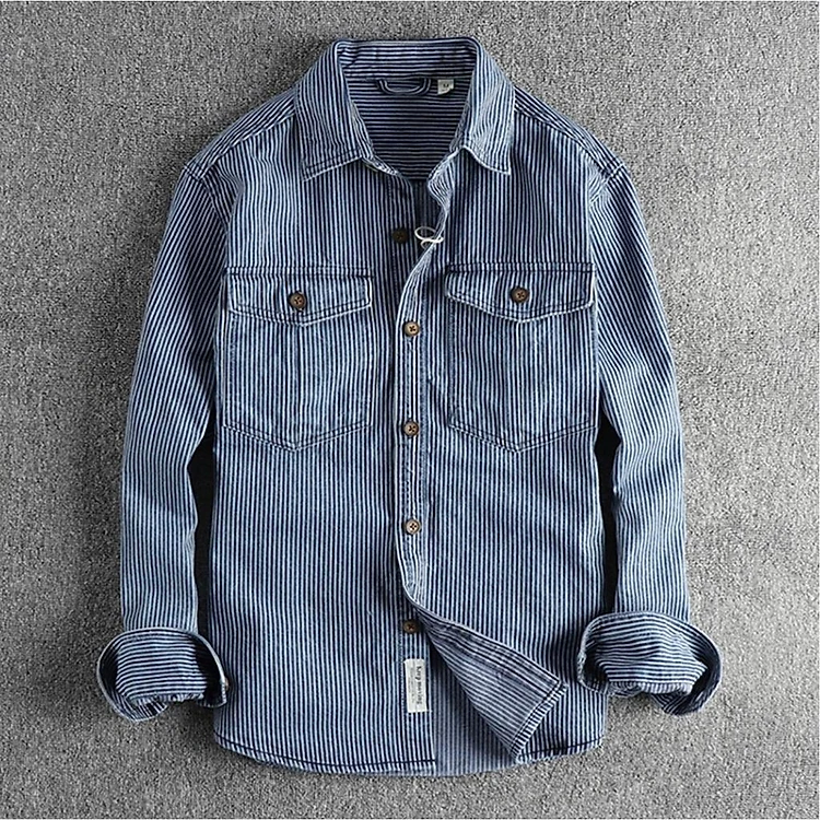 Áo sơ mi denim sọc phong cách Retro_Biker_Army