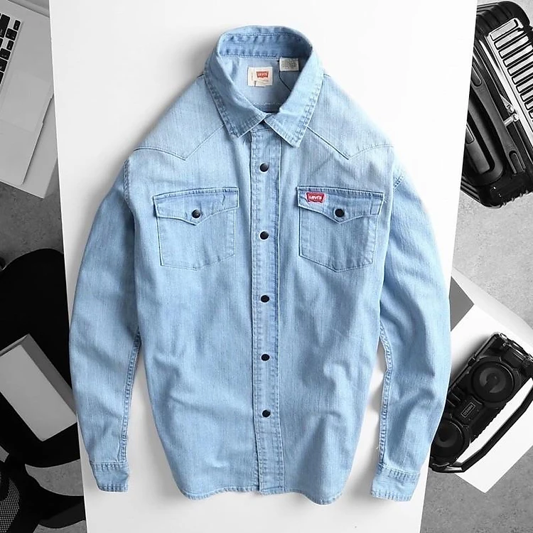 Áo sơ mi denim wax nhẹ cực bụi_nam tính