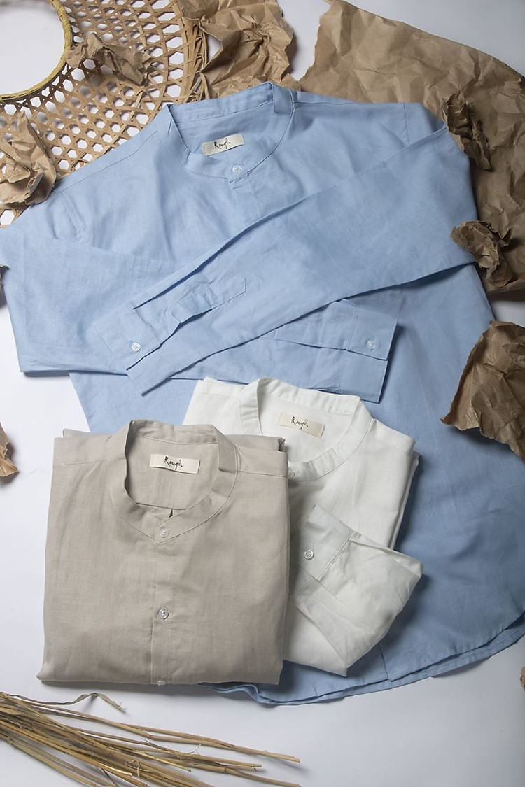 Áo sơ mi đũi nam cổ tàu cao cấp Rough
