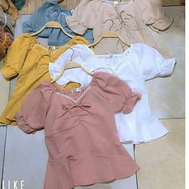 Áo sơ mi đũi ngắn thiết kế nhún ngực siêu xinh