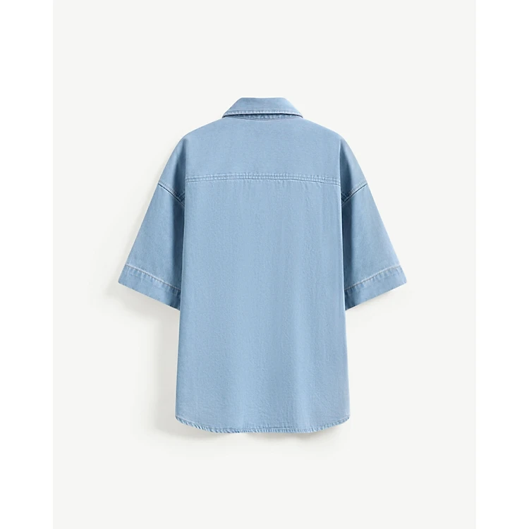 Áo Sơ Mi Jean Unisex ROUTINE 100% Cotton Trơn Form Loose - 10S24DSHU001R1 | LASTORE MENSWEAR