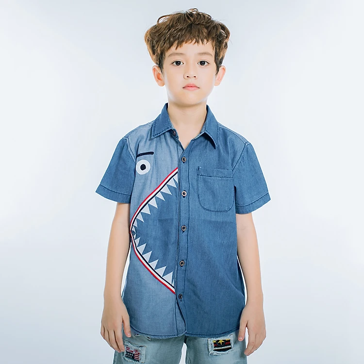 Áo Sơ Mi Jeans Tay Ngắn Bé Trai V.T.A.Kids 19012066 - Xanh Đậm chất liệu bền, đẹp.