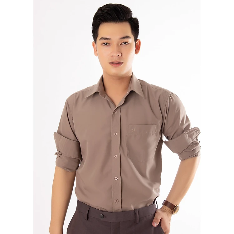 Áo sơ mi nam Amazing trơn tay dài màu nâu đất
