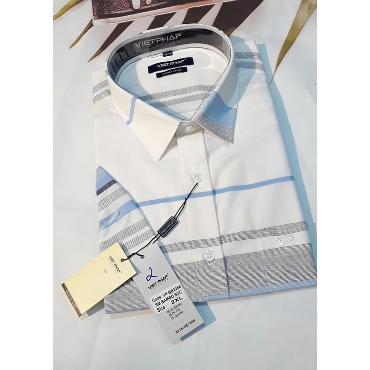 Áo sơ mi nam cao cấp vải sợi tre(bamboo) Với 48.5 % áo được làm từ vải sợi tre, so với vải cotton, vải sợi tre có khả năng thấm hút tốt hơn 60% tức gấp 3 – 4 lần loại cotton 100%.