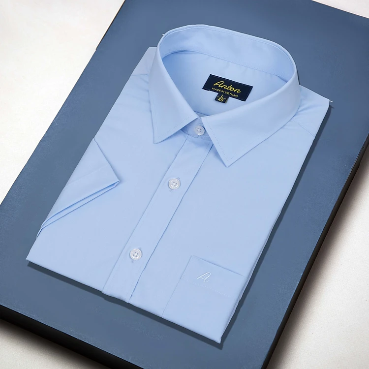 Áo Sơ Mi Nam Công Sở Trung Niên Anton Somianton Xanh Dương Nhạt Trơn Ngắn Tay Vải Cotton - YSN14