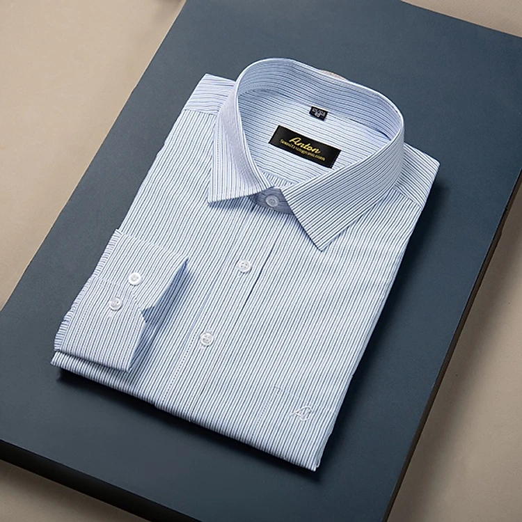 Áo Sơ Mi Nam Công Sở Trung Niên Thương Hiệu Anton Dài Tay Vải Cotton Kẻ Sọc Đôi Màu Xanh - Y327
