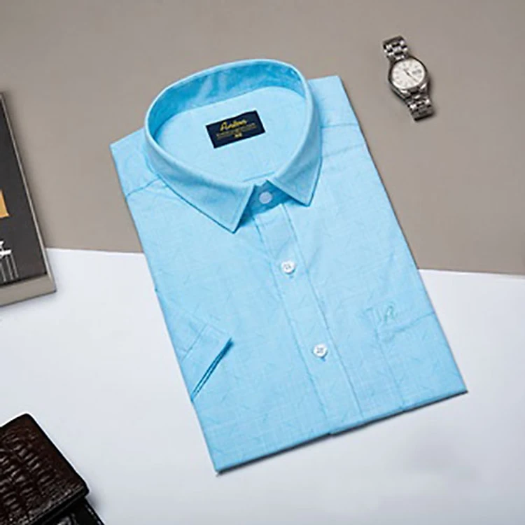 Áo Sơ Mi Nam Công Sở Trung Niên Thương Hiệu Anton Màu Xanh Ngọc Ngắn Tay Vải Sợi Tre Họa Tiết In -XGD560