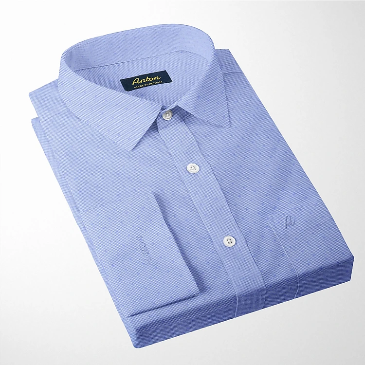 Áo Sơ Mi Nam Công Sở Trung Niên Thương Hiệu Anton Xanh Chấm Bi Dài Tay Vải Cotton – AC157