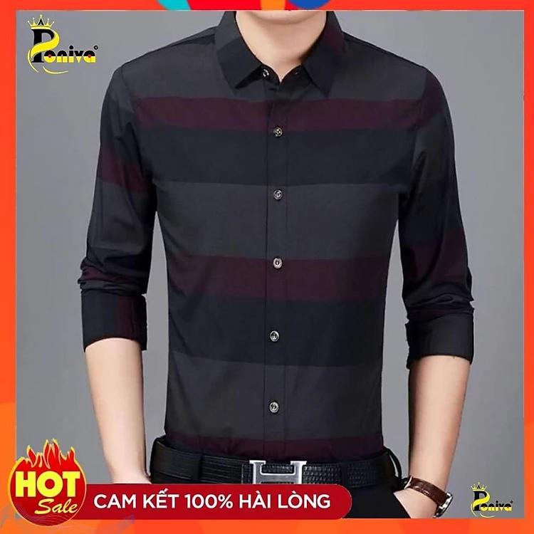 Áo Sơ Mi Nam Dài Tay Phối Sọc Ngang Bản To PNV999 Thời Trang Cao Cấp PONIVA Chất Vải Cao Cấp Mềm Mại Thấm Hút Mồ Hôi Tốt
