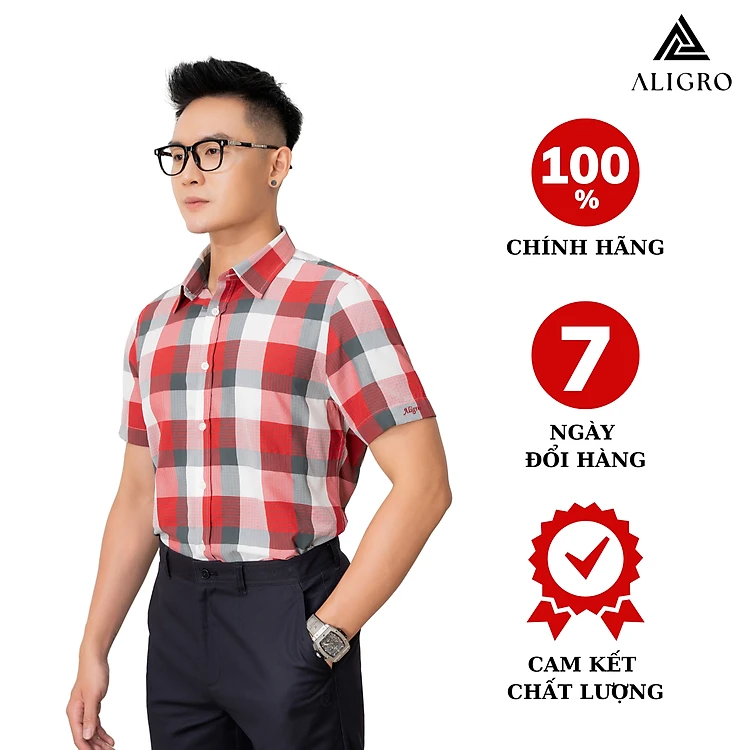 Áo sơ mi nam ngắn tay ALIGRO kẻ caro, cotton cao cấp, kháng khuẩn form slim vừa công sở thời trang trẻ trung ALGS-C58