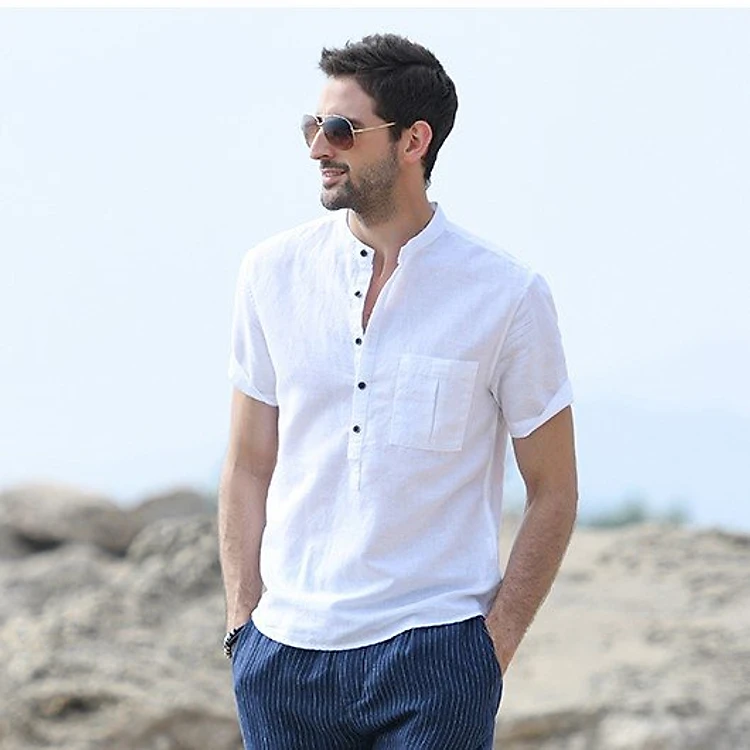 Áo sơ mi nam ngắn tay cổ tàu, chất liệu đũi mềm mát, sản phẩm cao cấp Đũi Việt