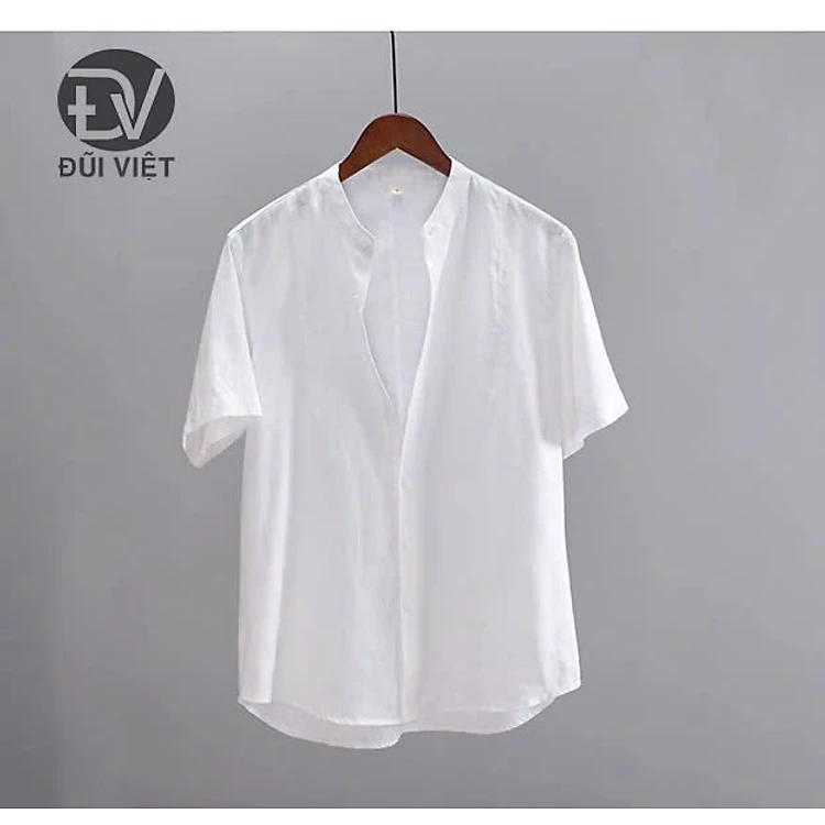 áo sơ mi nam ngắn tay cổ trụ thiết kế trơn dễ phối đồ sang chảnh, thanh lịch
