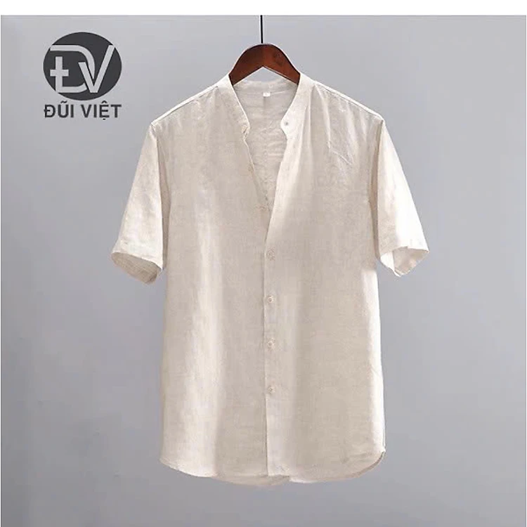 Áo sơ mi nam ngắn tay trơn basic unisex cổ trụ vải sợi Linen thô cao cấp