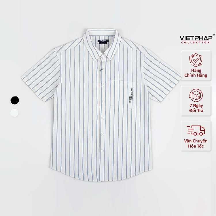 Áo Sơ Mi Nam Ngắn Tay VIỆT PHÁP/ Form Regular, Chất liệu Cotton Cao Cấp thoáng mát, thấm hút mồ hôi 2004