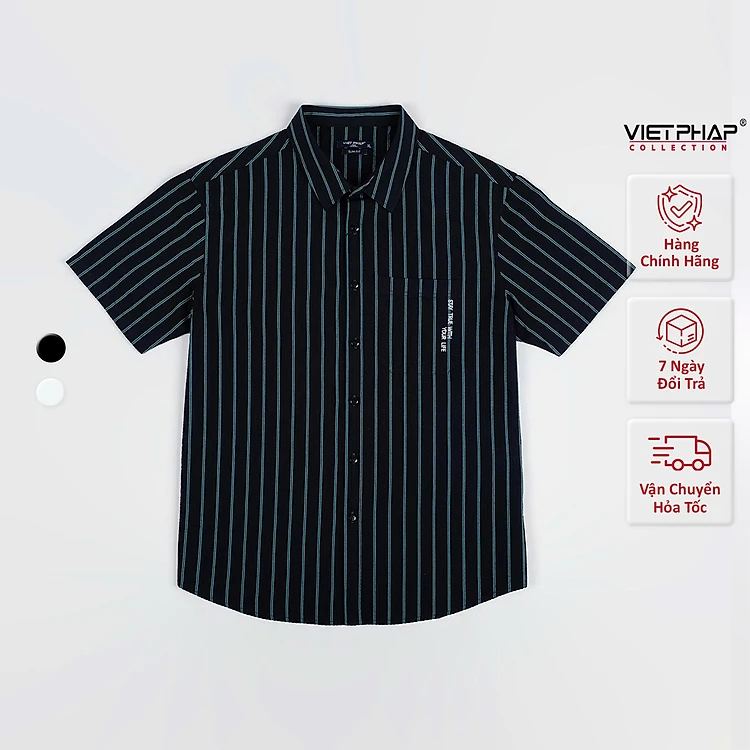 Áo Sơ Mi Nam Ngắn Tay VIỆT PHÁP/ Form Regular, Chất liệu Cotton Cao Cấp thoáng mát, thấm hút mồ hôi 2004