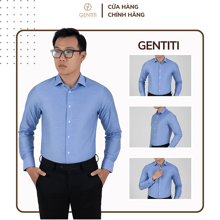Áo sơ mi nam tay dài màu xanh Navy sáng không túi GENTITI by Thái Tuấn - 1C805HAKT018