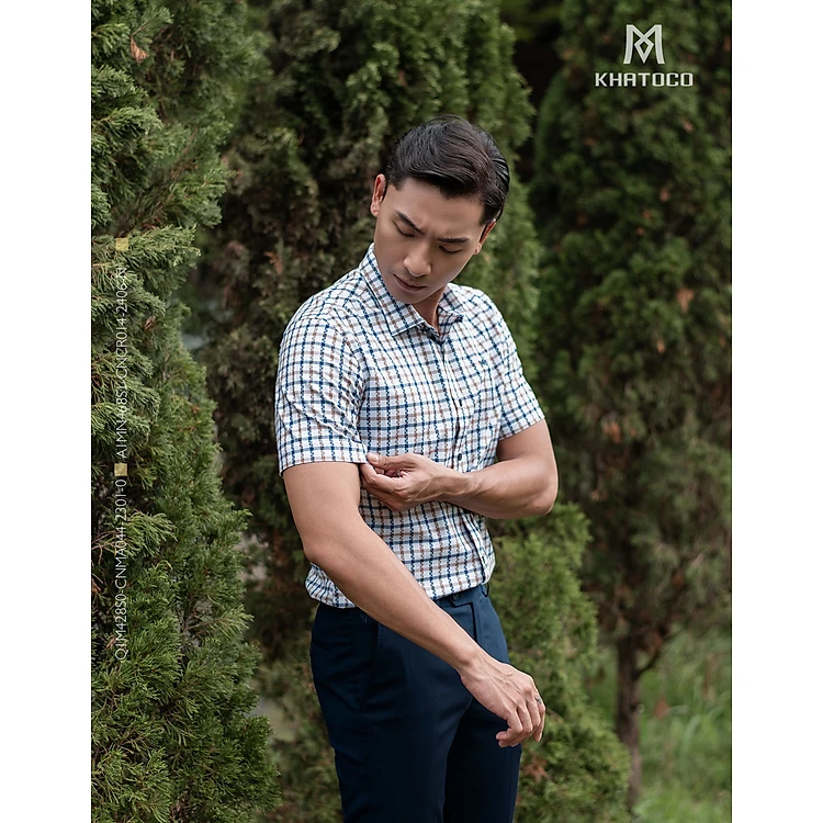 Áo sơ mi nam tay ngắn Khatoco caro xanh vàng mã A1MN468S1