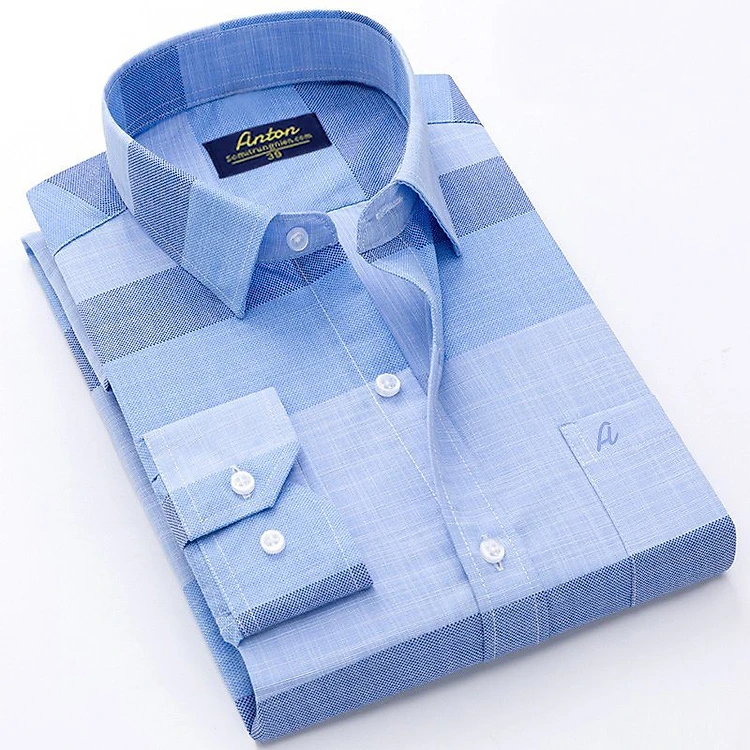 Áo Sơ Mi Nam Thương Hiệu Anton Dài Tay Công Sở Trung Niên Vải Cotton Họa Tiết Kẻ Caro Màu Xanh - 8566