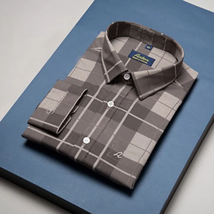 Áo Sơ Mi Nam Trung Niên Công Sở Dài Tay Thương Hiệu Anton Vải Sợi Tre Kẻ Caro Màu Nâu - YAC135