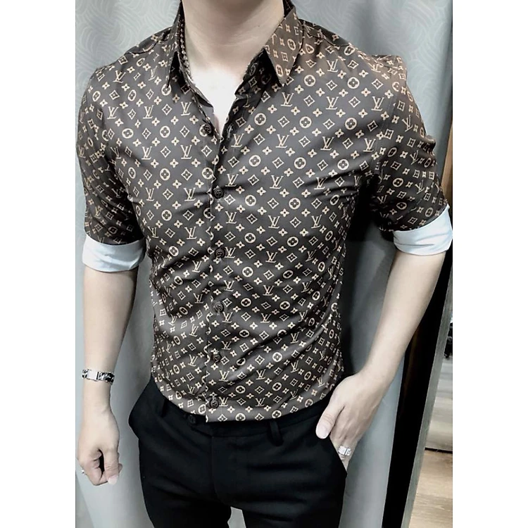 ÁO SƠ MI NÂU PHỐI HỌA TIẾT MONOGRAM -LOUIS VUITTON SM968