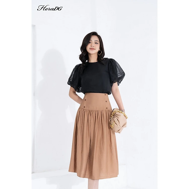 Áo sơ mi ngắn tay 2 lớp HeraDG thiết kê cổ tròn tay bồng dáng suông công sở điệu đà chất liệu tơ cao cấp SAKBC3023