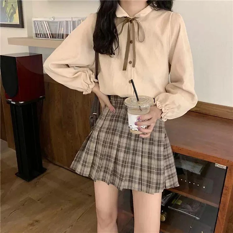 áo sơ mi nhung nơ cổ vintage tiểu thư ảnh thật