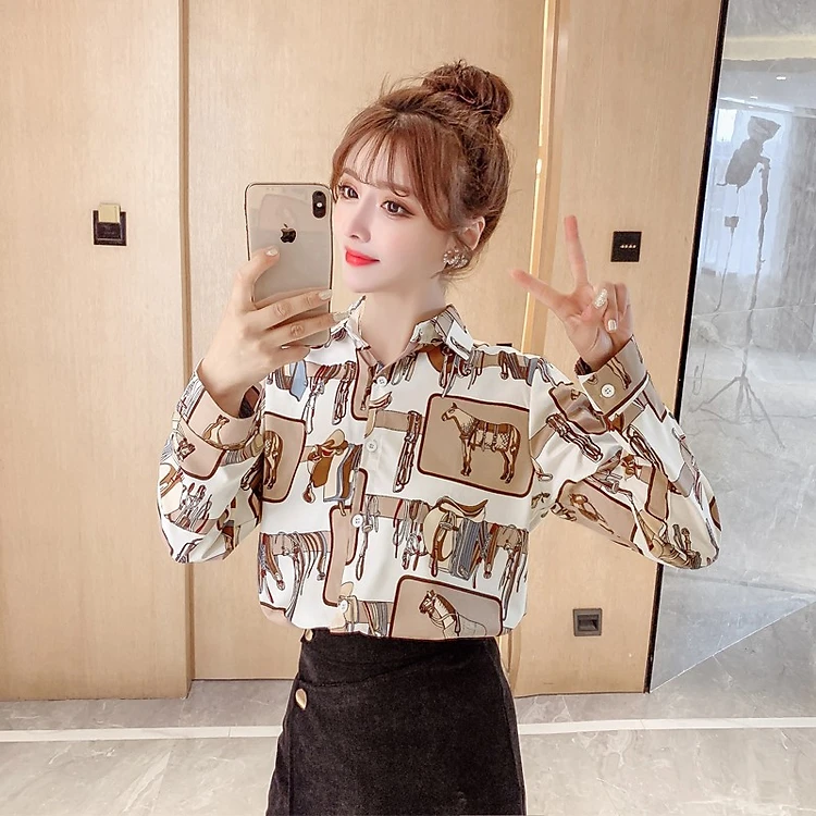 Áo sơ mi nữ tay dài hoạ tiết