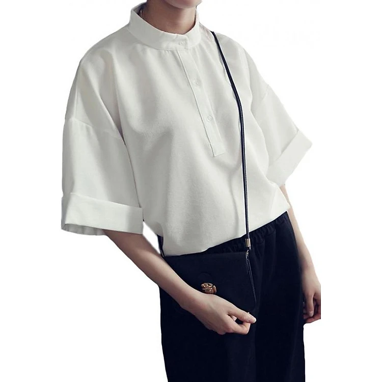 - Áo Sơ Mi Nữ Cổ Tầu Form Rộng Tay Ngắn được thiết kế thanh nhã với kiểu áo form rộng trẻ trung.
