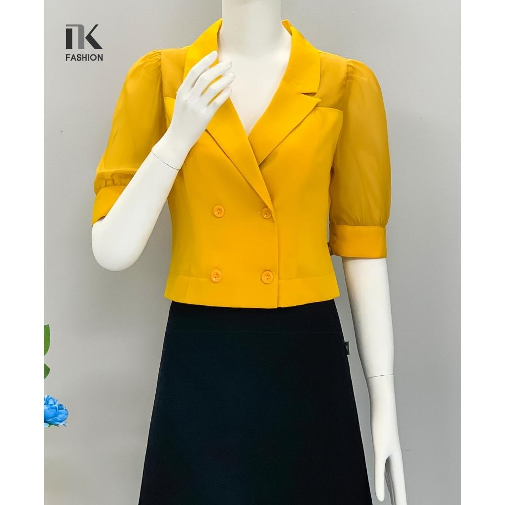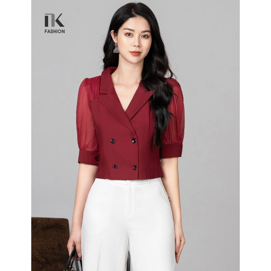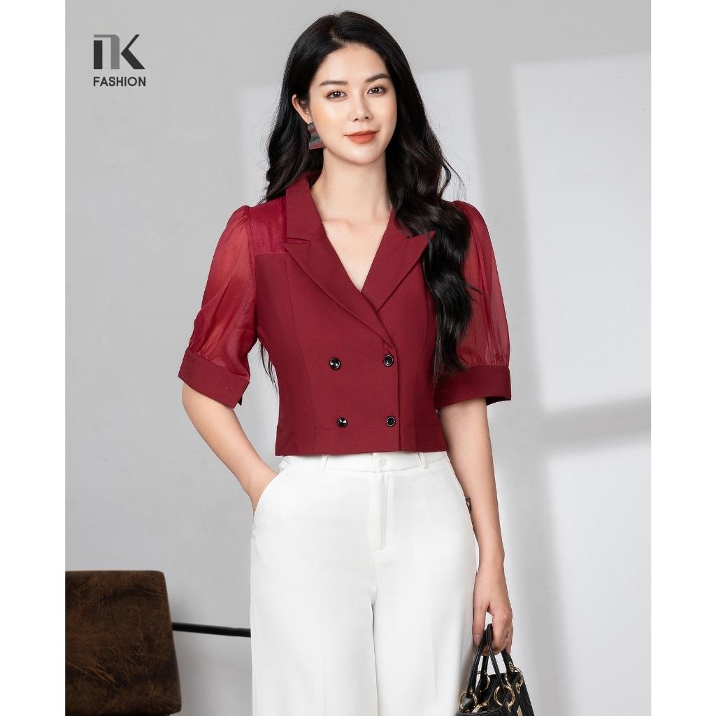 Áo Sơ Mi Nữ Công Sở Cổ Vest NK Fashion Tay Lỡ Giao Cúc Phối Tơ Ánh, Chất Liệu Nhập Hàn Mềm Mịn NKSM2112016