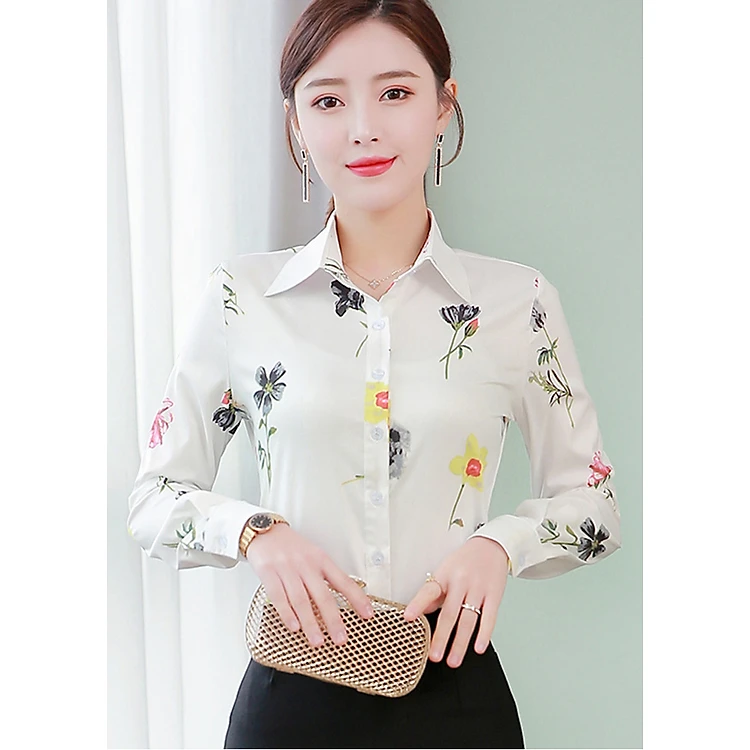 Áo sơ mi nữ tay dài hoạ tiết
