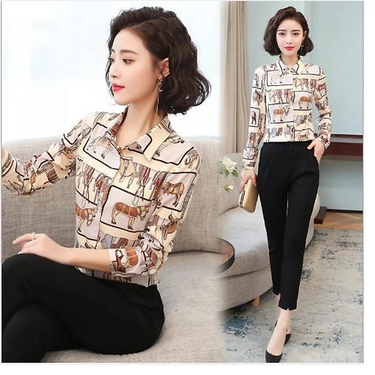 Áo sơ mi nữ tay dài hoạ tiết