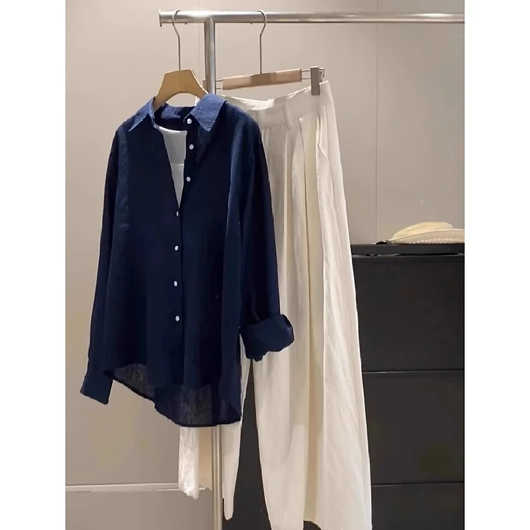 Áo sơ mi nữ dài tay trơn basic đuôi tôm siêu dễ phối đồ vải Linen sợi tự nhiên 100% cao cấp