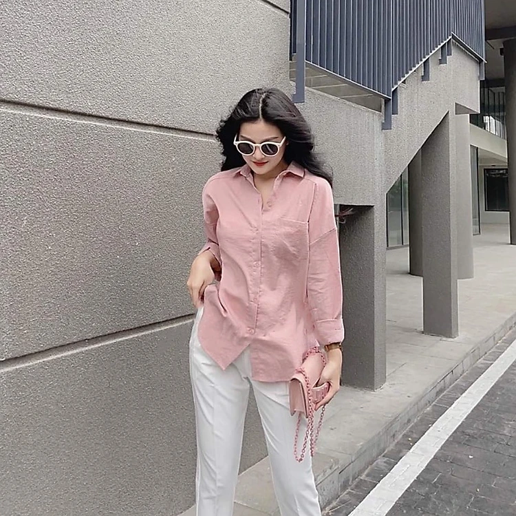 Áo sơ mi nữ form rộng dáng dài chất liệu Đũi mềm nhẹ thoáng mát, áo sơ mi bigsize từ 40kg đến 95kg NeSa Shop