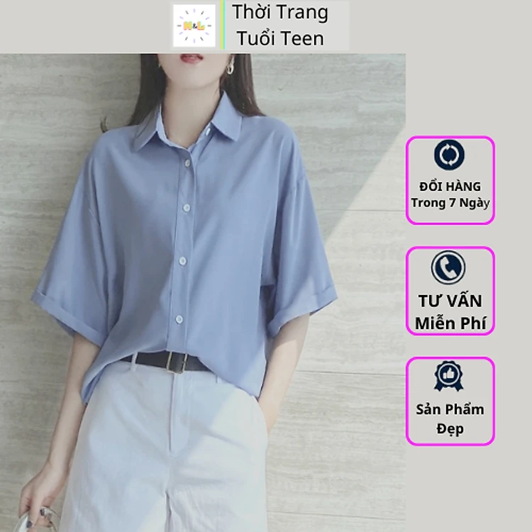 Áo sơ mi nữ form rộng tay ngắn chuẩn form hàn quốc trẻ trung năng động vải lạu mềm mại ít nhăn-MURN02