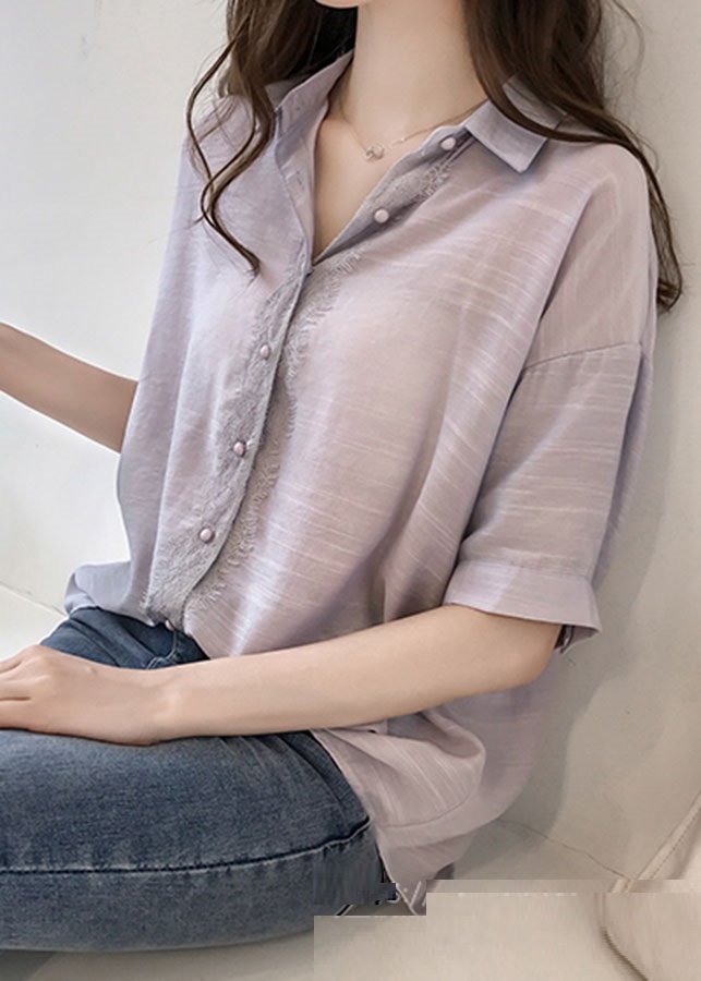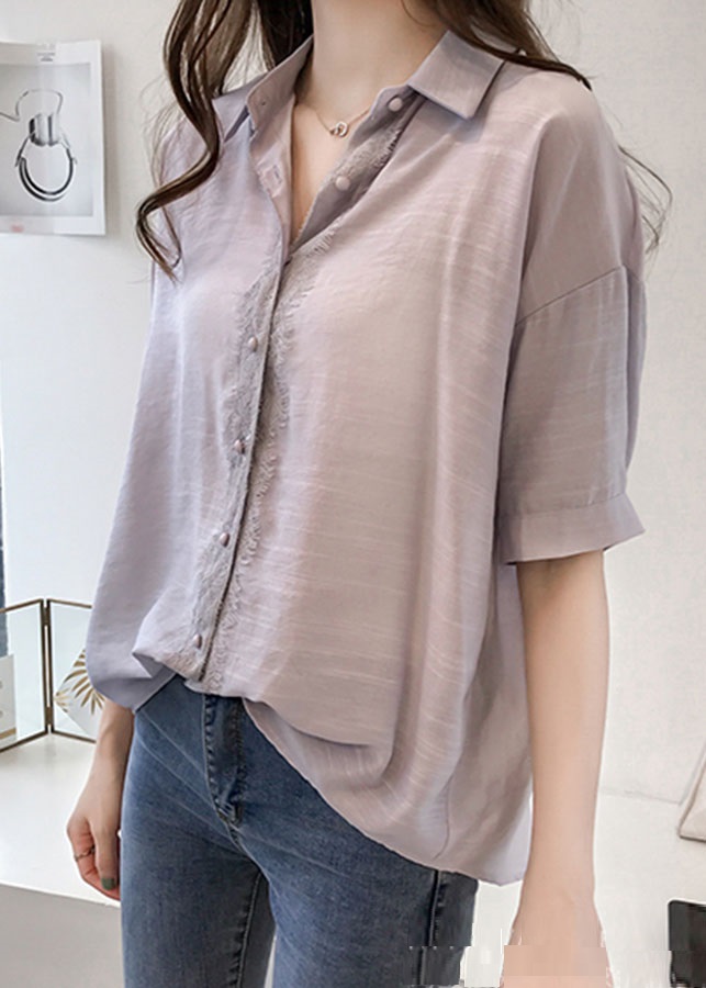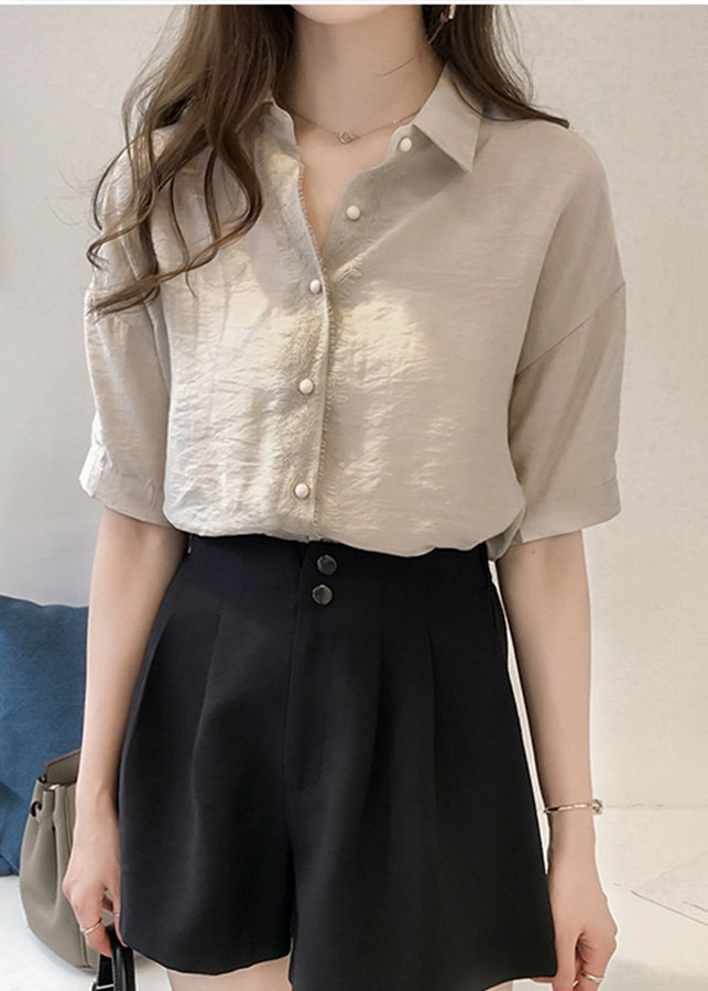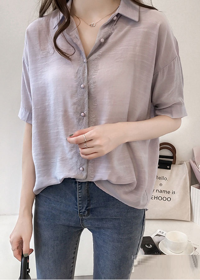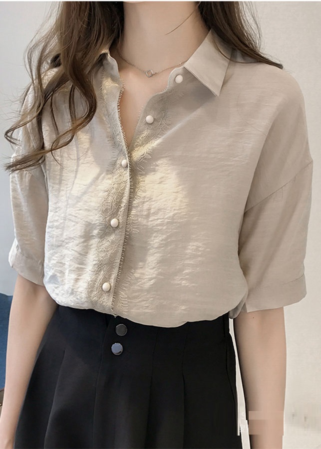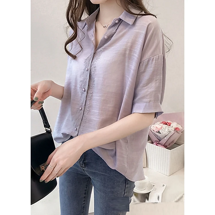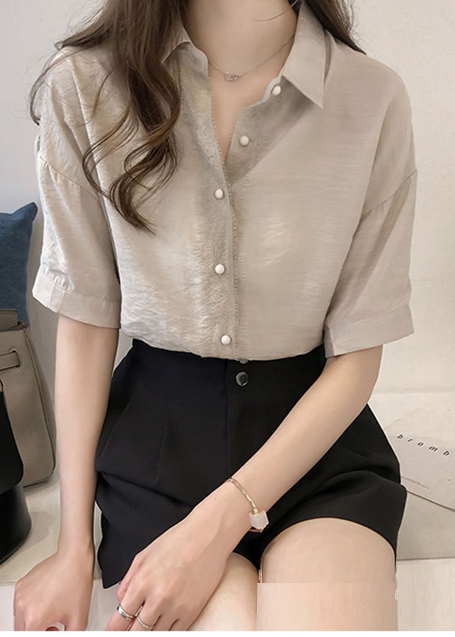 - Áo sơ mi nữ form rộng trễ vai cúc bọc nẹp ren được thiết kế thanh nhã với kiểu áo form rộng trẻ trung.