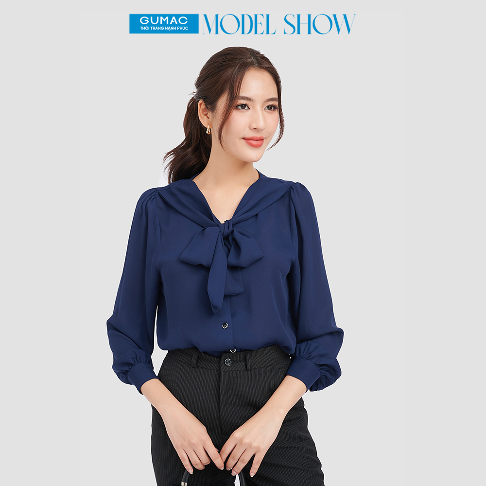 * Áo kiểu phom regular, cổ V buộc nơ; Tay dài, măng-séc, cửa tay nhún.*