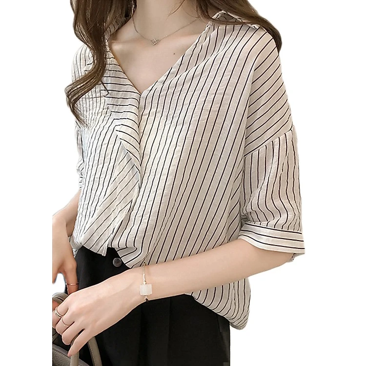 - Áo Sơ Mi Nữ Kẻ Sọc Form Rộng Tay Ngắn được thiết kế thanh nhã với kiểu áo form rộng trẻ trung.
