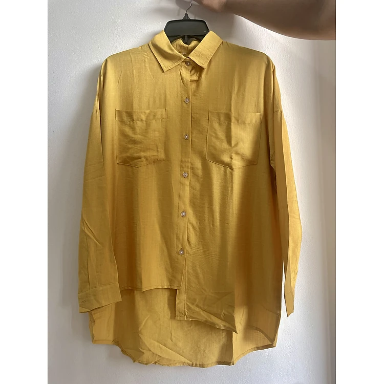 Áo sơ mi nữ phom rộng dài tay, chất liệu Đũi tơ mềm mịn, sơ mi nữ kiểu tà lệch NeSa Shop SMH.31