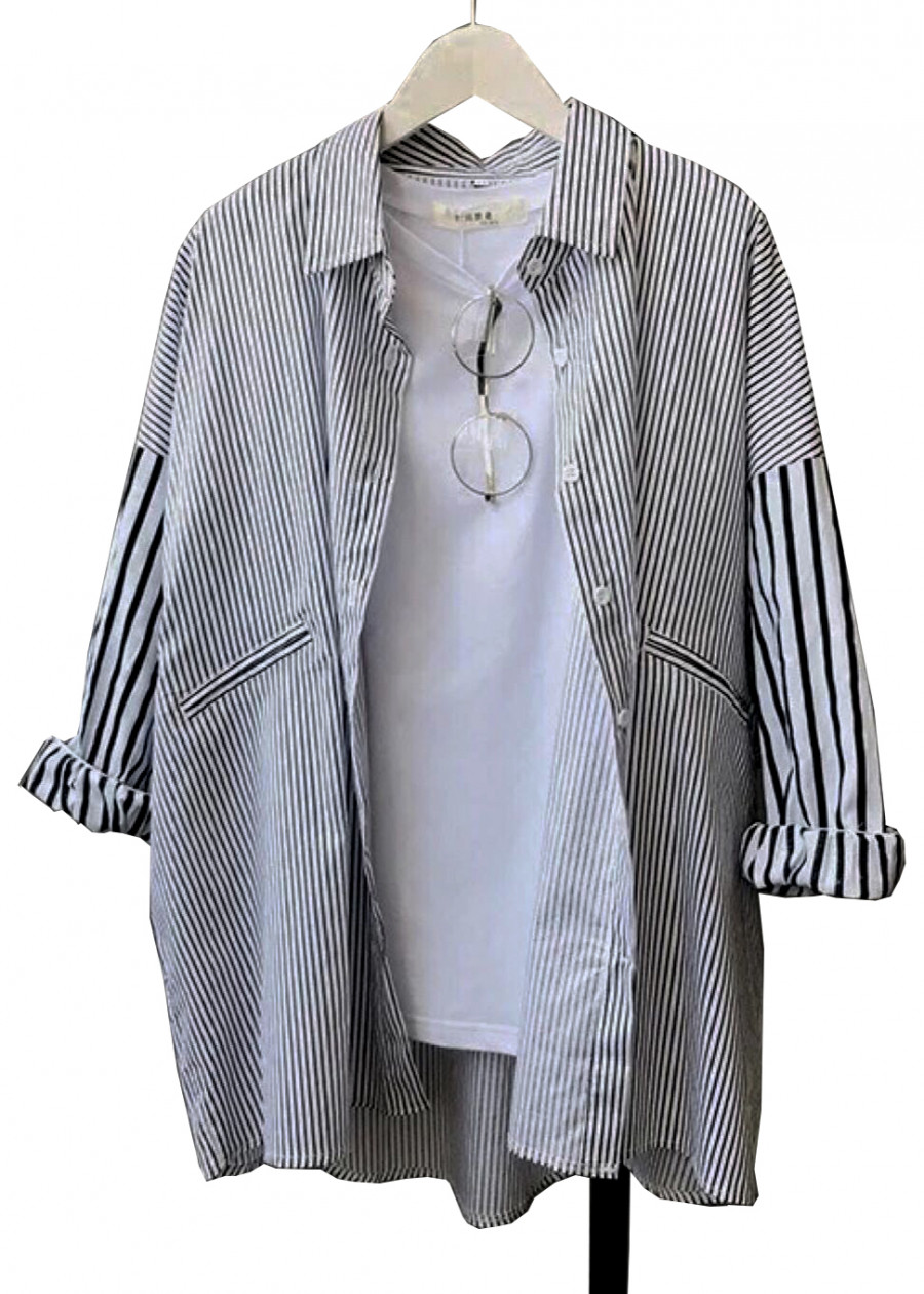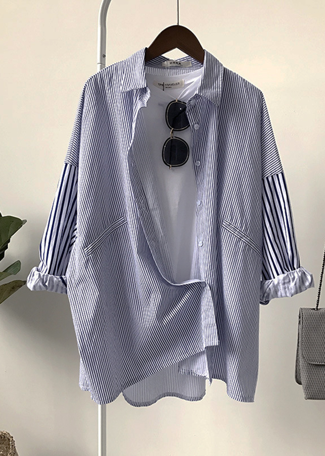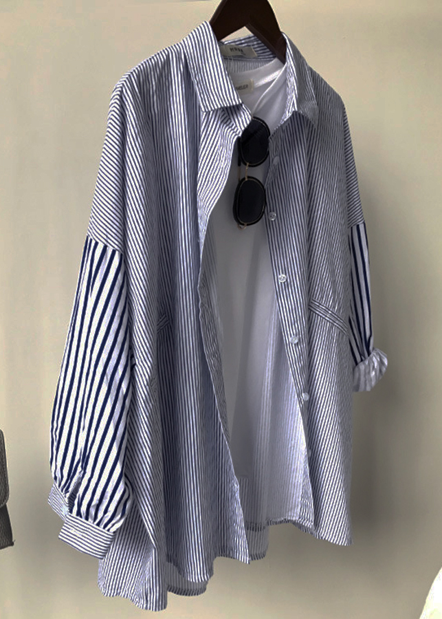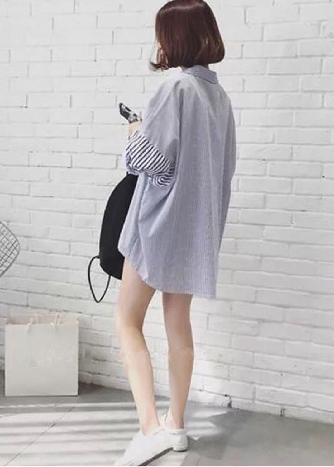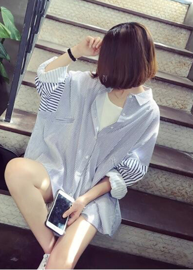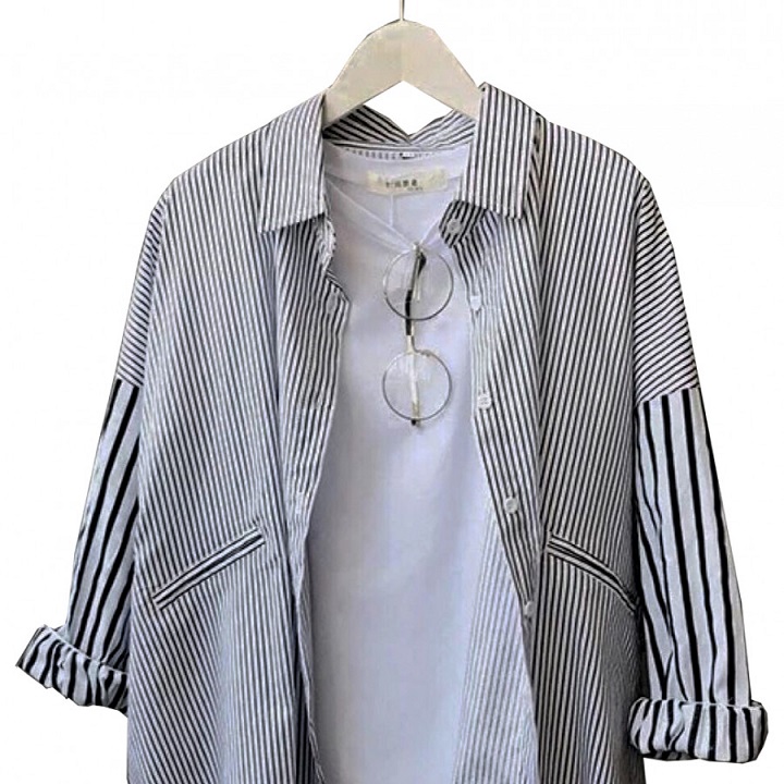 Aó sơ mi nữ sọc kẻ dáng rộng phong cách bụi bặm đường phố