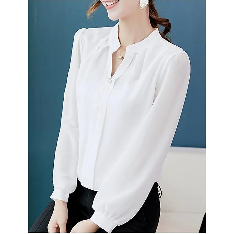 Áo Sơ MI Nữ Tay Dài Cổ Kiểu Nút Ngọc - Mã SSL1222