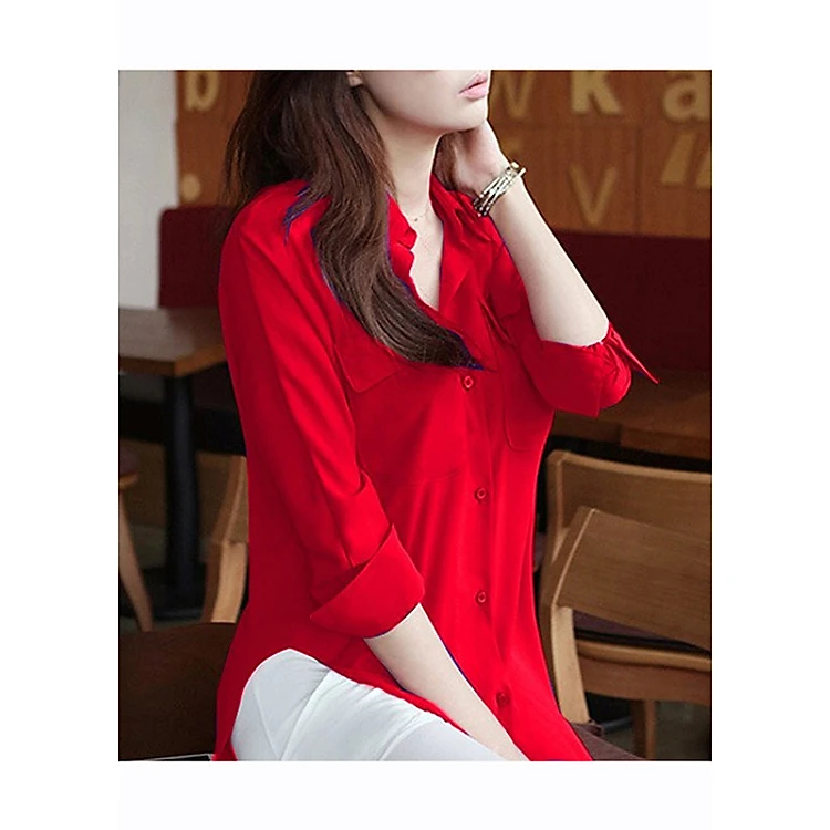 Kiểu Dáng: thiết kế áo cổ bẻ, dài tay, phối túi tiện lợi, lai bầu. Áo có thể mix cùng nhiều style, quần dài quần short, chân váy, thích hợp mặc đi chơi, dạo phố, dã ngoại, dực tiệc hay đến công sở.